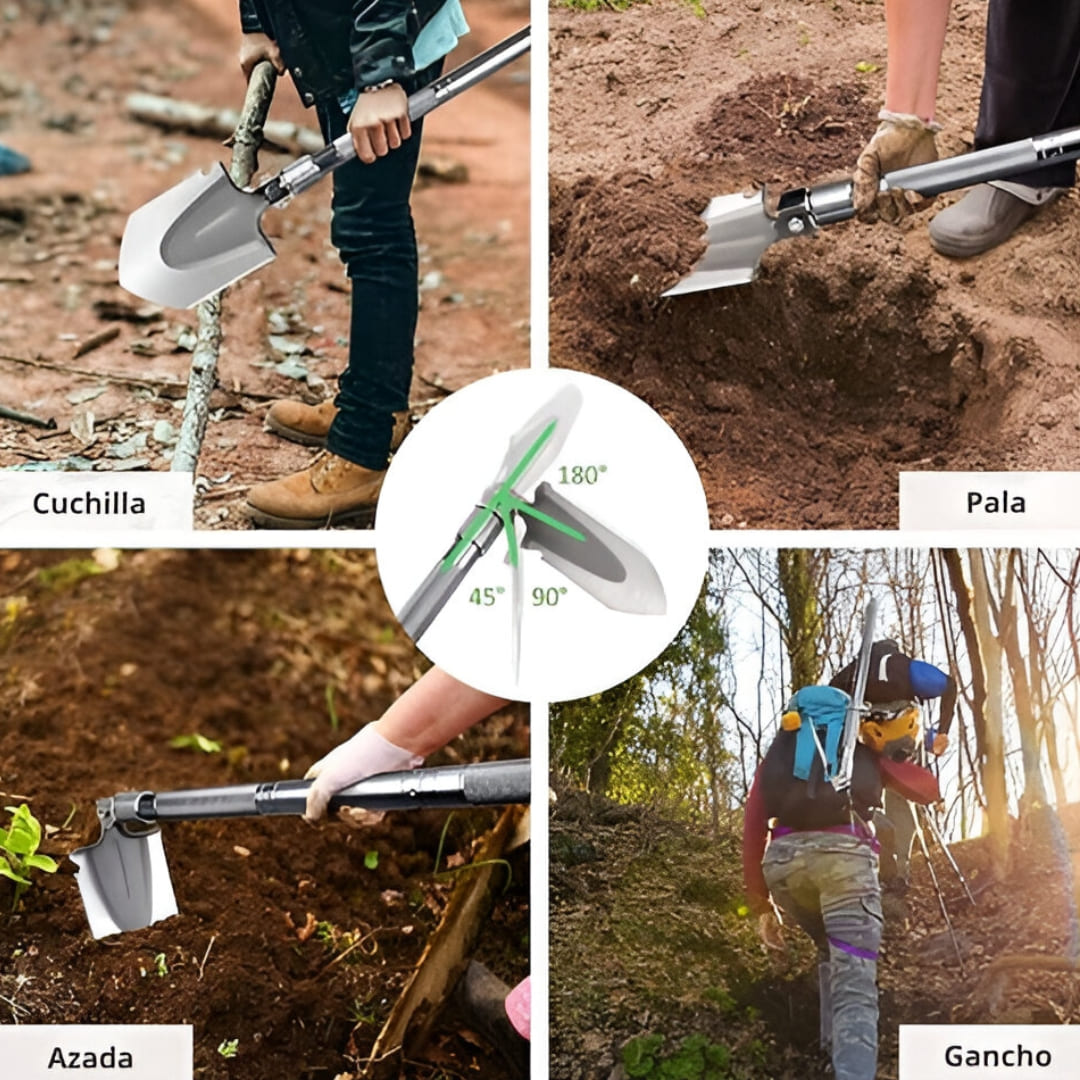 Con esta herramienta podrá cavar agujeros con facilidad, cortar ramas y arbustos sin dificultad e incluso romper cristales en situaciones de emergencia.